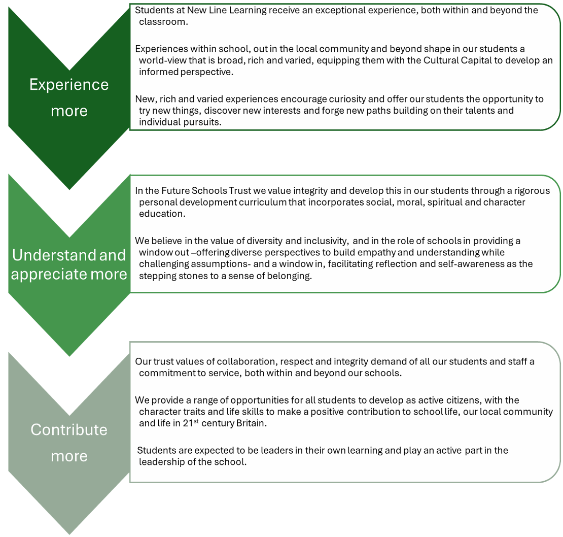 At New Line Learning we are committed to providing opportunities for our students to experience more, enabling them to understand more about the world in which they live, contribute to the community around them and appreciate a range of perspectives, building a foundation for life-long personal growth.